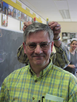 Meneer bart, hij is vertrokken van onze school.... Hij was de directeur..